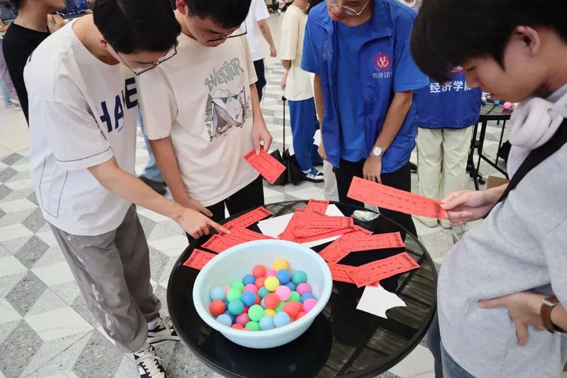为增加活动多样性,提高同学们的参与度,活动还设置了“月字飞花令”、“趣味投壶”等多项游戏供在校师生自由参与,师生们积极踊跃地参与小游戏,活动快结束时,现场还进行了激动人心的抽奖活动。以月饼为媒,以游戏为桥,让师生在温馨欢乐的氛围中深化了情感联结,增强了师生的校园归属感,充分展现了广财校园和谐包容的文化底蕴与人文关怀。