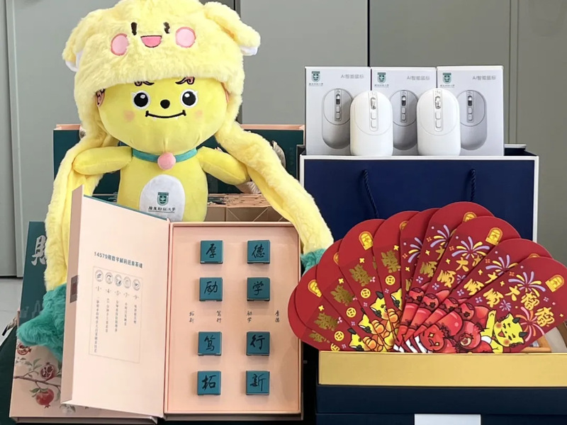 活动现场展出了流沙冰箱贴、主题明信片、财宝绒帽、财韵普洱生茶及AI智能鼠标等十余款“广财文创”产品。这些产品深度融合校徽、吉祥物、校训等校园文化元素,在满足日常办公与生活实用需求的同时,兼具收藏与纪念价值,吸引众多员工驻足了解、咨询选购。