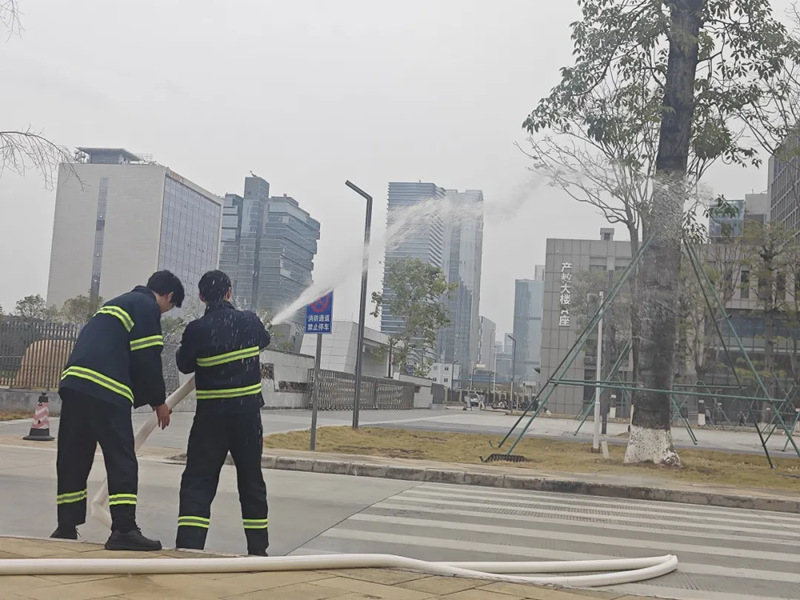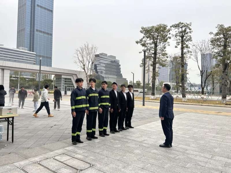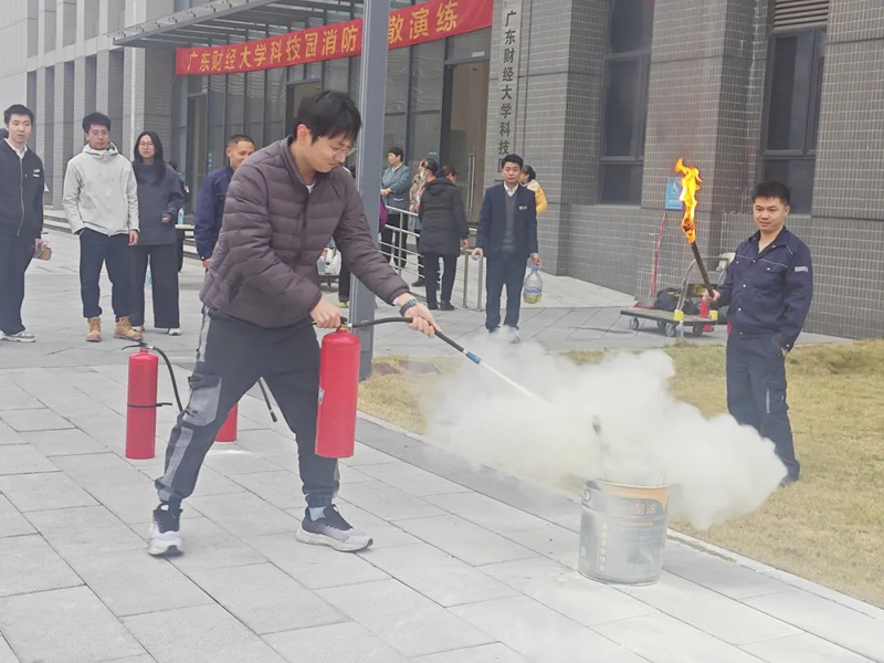 活动注重知识普及与实操锻炼相结合。全体人员首先参与消防知识有奖竞答,内容涵盖火灾预防、疏散逃生与消防器材使用等重点安全知识。随后,活动移至北广场开展灭火器实操演练,在专业人员的指导下,参训人员依次对模拟火情进行扑救,切实掌握初期火灾应对技能,有效提升了应急处置实战能力。